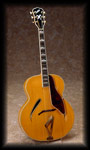 James L. D'Aquisto (1935-95) started his career by tending to the D'Angelico shop in the early 1950s. As D'Angelico's health began to fail in the late 50s, D'Aquisto assisted him with instrument construction. After John D'Angelico died in 1964, D'Aquisto constructed his own guitars, which resembled those made by D'Angelico. In 1988, D'Aquisto developed the Modernistic Series beginning with the Avant Garde, co-designed by Hank Risan. The Modernistic Series is a radical departure in style and design from his earlier models. |